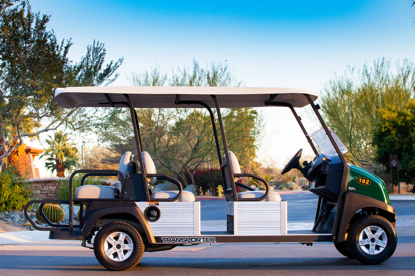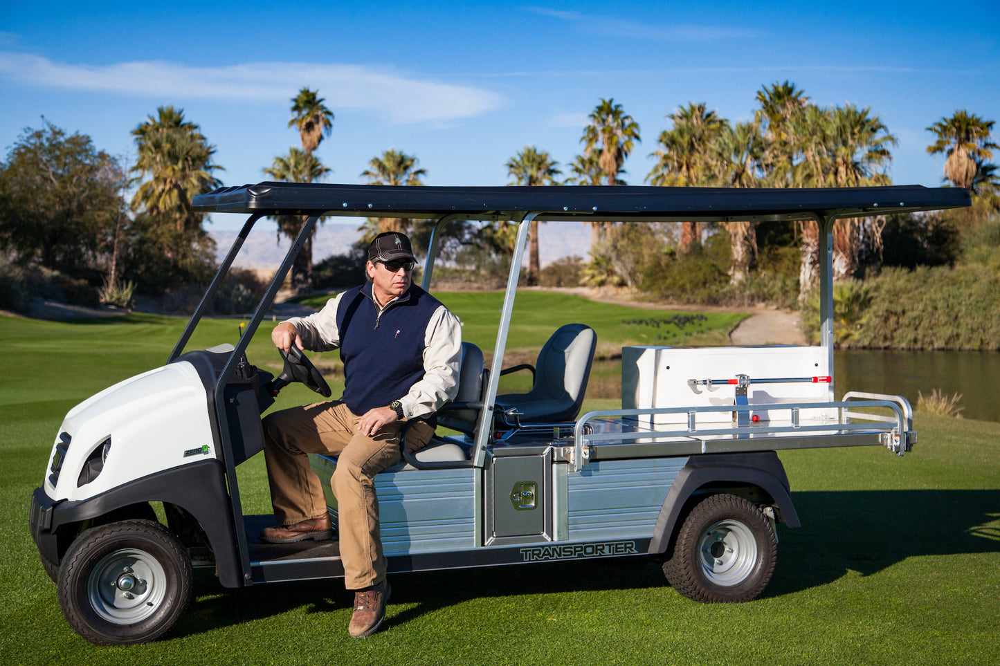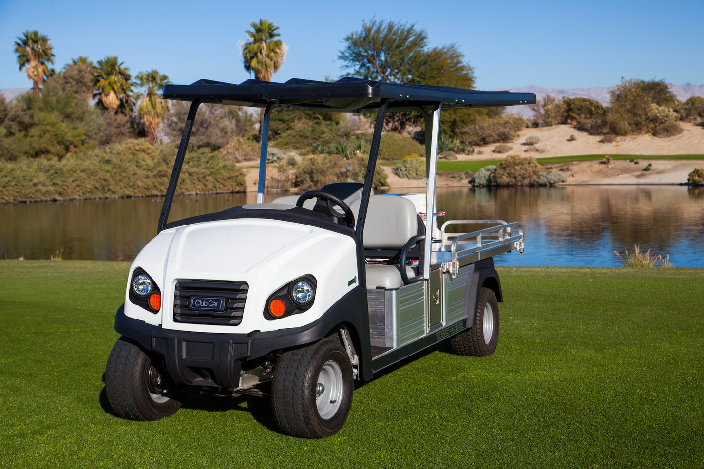 Four-passenger models come with cargo beds, and all Transporter passenger vehicles feature rustproof aircraft-grade aluminum frames that resist water, fertilizers, chemicals, and salt and extend the vehicles’ lifespans.
